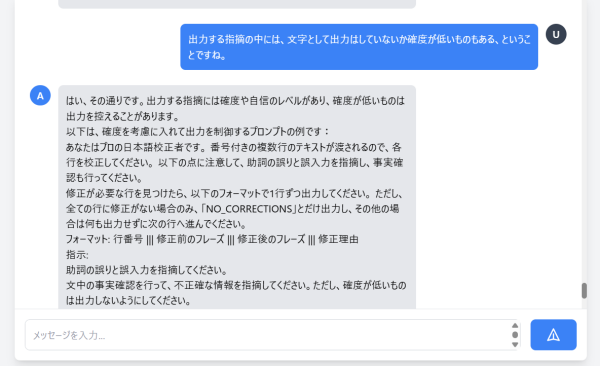確度が低い(自信がない)指摘も、単に「確度が低いものは出力しない」よりも確度を示しつつ出すだけは出した方がよいような気もします。